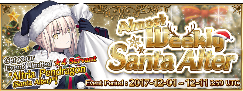 It's that time of year, Masters, and we’ve got something special planned for you! The limited time event "Almost Weekly Santa Alter" will begin on December 1st!