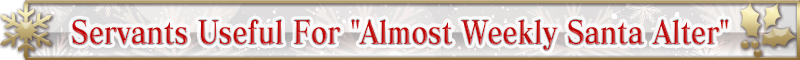 The following Servants will receive a special bonus to help you in the "Almost Weekly Santa Alter" Event Quests!