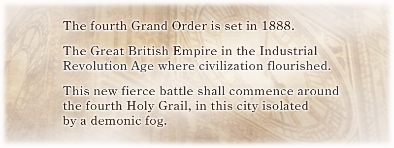 The Fourth Singularity will take place in London, during the Industrial Revolution where new Servants face off in a thrilling conflict.