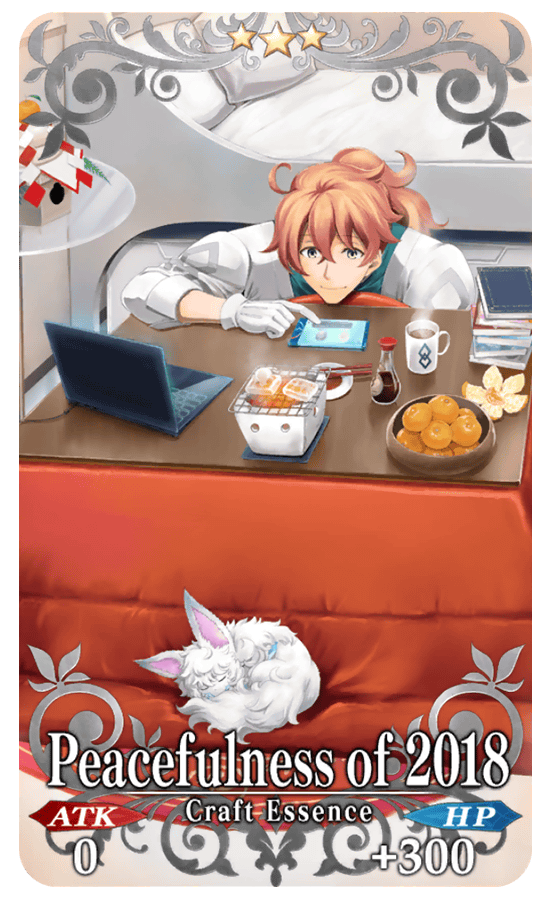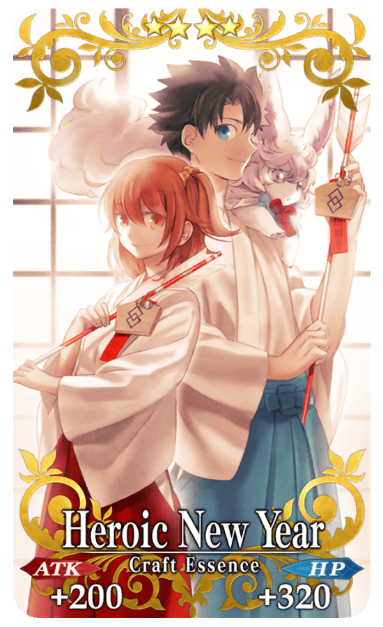 Limited Time Craft Essences "★5 (SSR) Grand New Year," "★4 (SR) Heroic New Year," "★3 (R) Peacefulness of 2018," and "★3 (R) Law of the Jungle," will also have increased drop rates. This is your only chance to get these special New Year's themed Craft Essences!