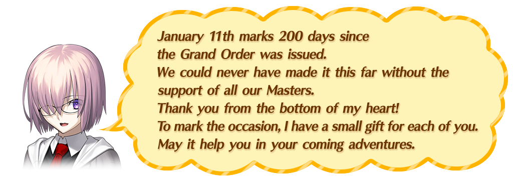 In addition, 1 day limited present! Since January 11th is the 200th Day Anniversary, |