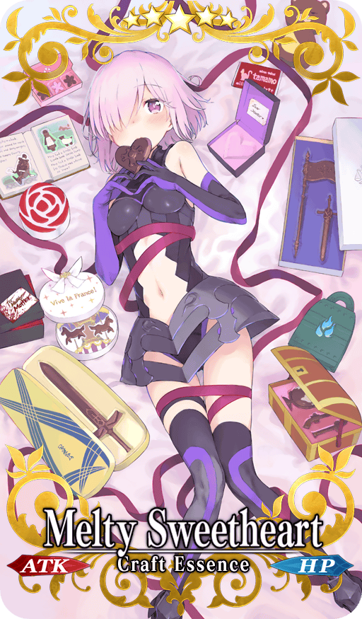 Increase Arts Card & Quick Card effectiveness by 10% & HP Recovery amount by 20% for yourself + Increase Choco Coin drops for the equipped Servant's class by 5 ["Valentine’s 2018" only]