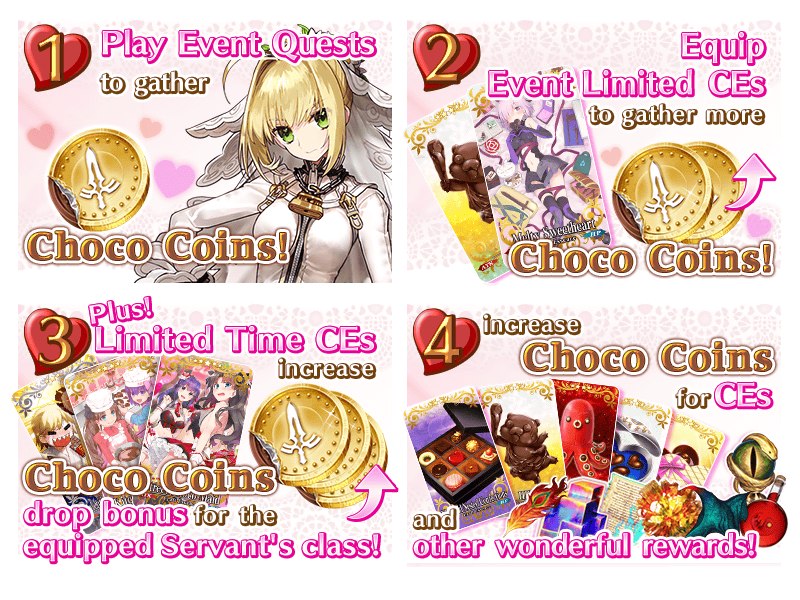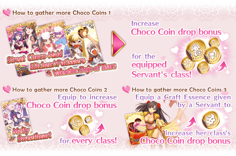 Equip Event Limited and Limited Time Craft Essences for a "Choco Coin" drop bonus!