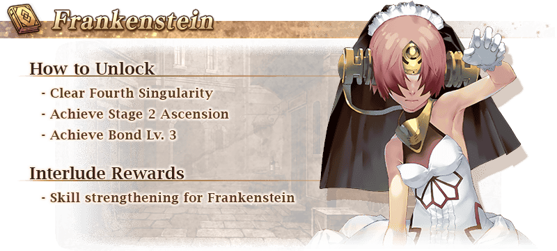 New Interludes will be available for Atalante, Scáthach, Tamamo-no-Mae, and Frankenstein!