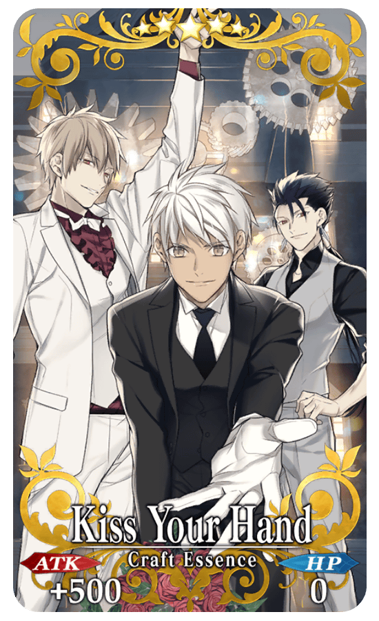 Furthermore, a "Boys Collection" of Limited Time Craft Essences will be available! Don't miss your chance to summon "★5 (SSR) Kiss Your Hand," "★5 (SSR) Teacher and I," "★5 (SSR) Versus," "★4 (SR) Beasts Under the Moon," "★4 (SR) Glass Full Sweet Time," "★4 (SR) Noisy Obsession," "★3 (R) Salon de Marie," and "★3 (R) Prince of Slayer!"