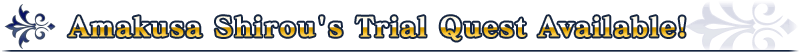 During the pickup period, Amakusa Shirou's Trial Quest will appear in Chaldea Gate!