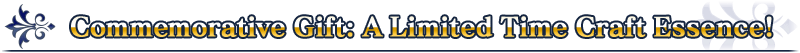 To commemorate "CHALDEA BOYS COLLECTION 2018," each Master will be able to choose one of the Limited Time Craft Essences as a special gift! Click here or on the banner below to learn more.