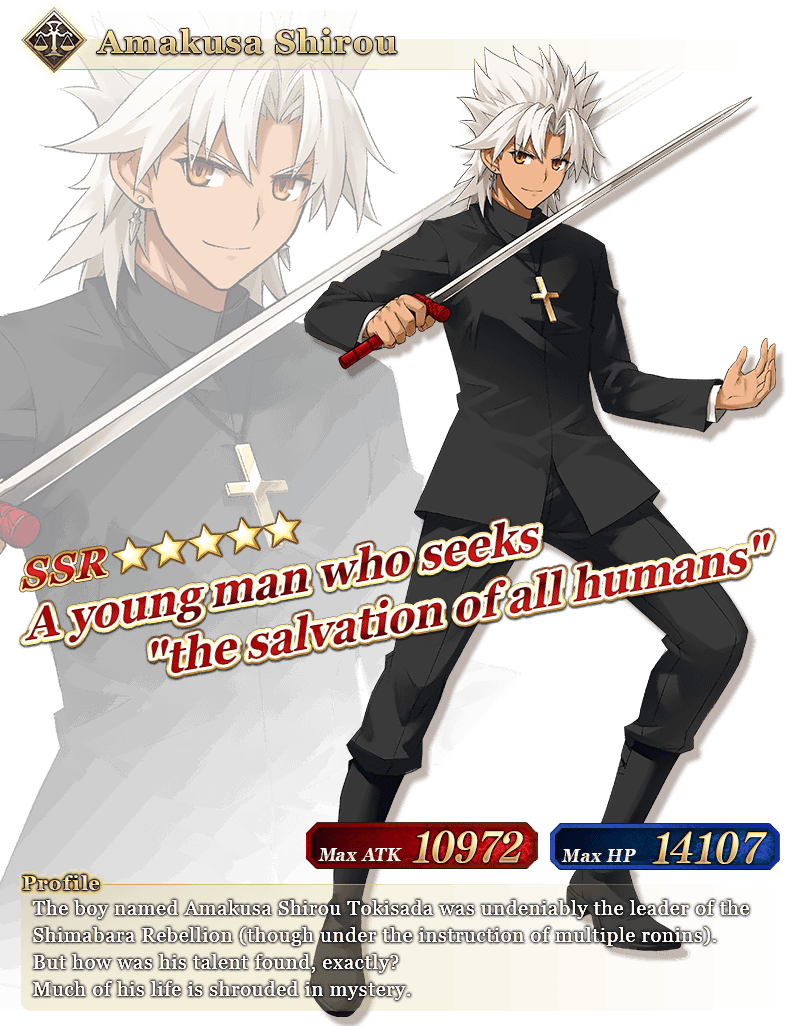 * Amakusa Shirou will not be added to Story Summon after the "CHALDEA BOYS COLLECTION 2018 Pickup Summon (Daily)" period ends.