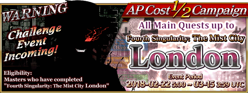 To prepare for this event, we're halving the AP cost for all Main Quests up to London.