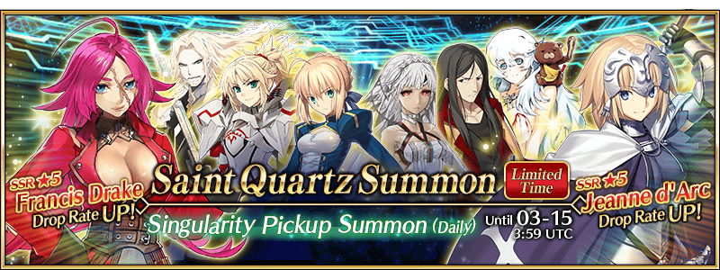 * Any Master can perform the Pickup Summon, even if they have not yet cleared "Singularity F: Flame Contaminated City, Fuyuki."