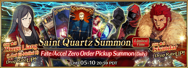For a limited time, the Fate/Accel Zero Order Pickup Summon (Daily) will be available!