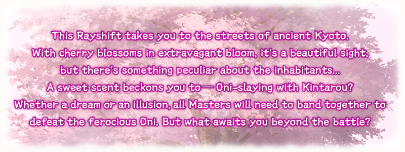 This event will include a new type of quest, in which all Masters team up to slay Ibaraki-Douji. "Rashomon Raids" will appear multiple times over the course of the event.