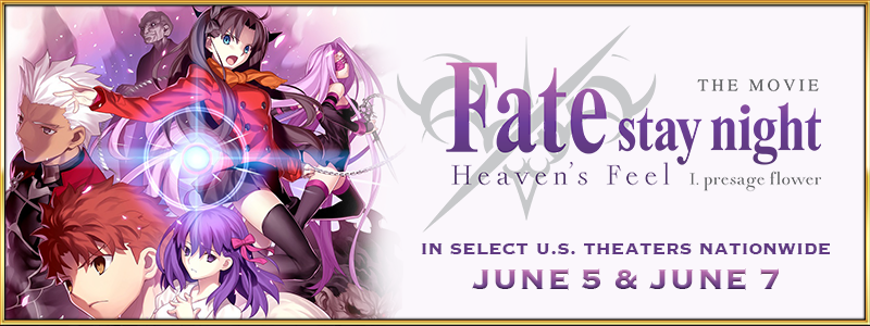 "Fate/stay night [Heaven’s Feel] THE MOVIE I. presage flower" will be back in select U.S. theaters nationwide on June 5th and June 7th! Don’t miss the beginning of this epic trilogy as the fateful events of the Fifth Holy Grail War unfold with a brand new English dub featuring the all-star cast from "Fate/stay night [UNLIMITED BLADE WORKS]" and "Fate/Zero."
