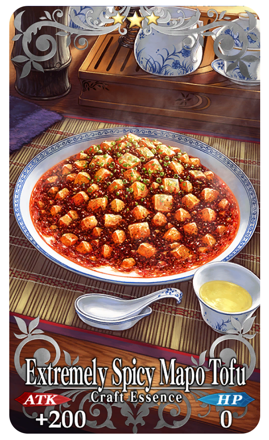 New Craft Essences "★3 (R) Bronze-Link Manipulator," "★3 (R) Ath nGabla," "★3 (R) Bygone Dream," "★3 (R) Extremely Spicy Mapo Tofu," and "★3 (R) Jeweled Sword Zelretch" can be summoned before their official addition to the game!