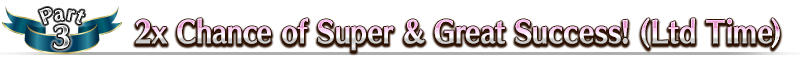 The chance of Super Success (double EXP acquired) and Great Success (triple EXP acquired) when performing Servant and Craft Essence Enhancement will be doubled for a limited time!