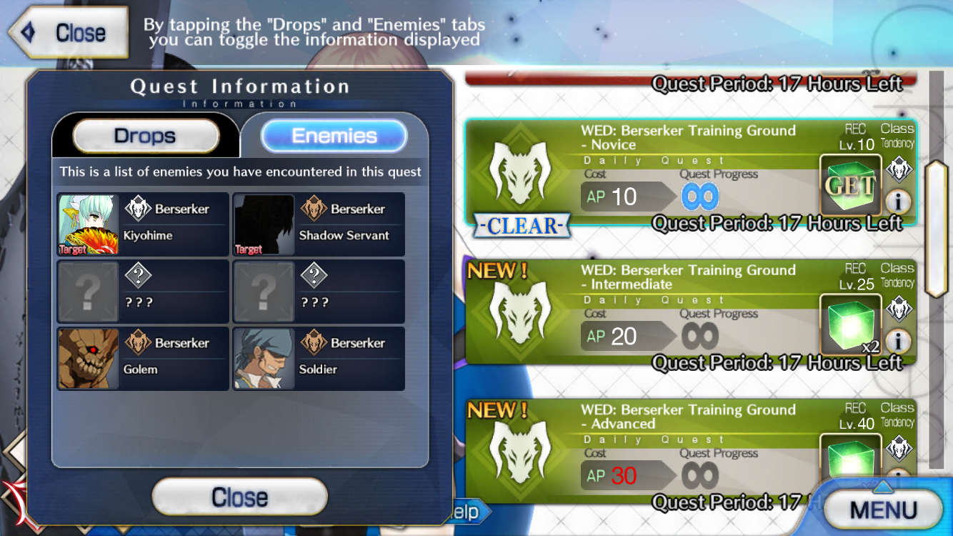 12. Updated AP replenishment such that, after selecting a quest with insufficient AP and using an AP replenishment item, the quest will remain selected.