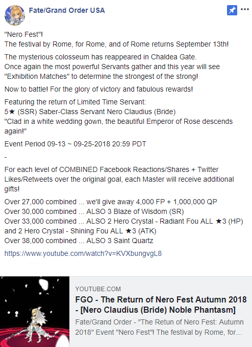 Fate/Grand Order USA Official Facebook: @FateGO.USA
