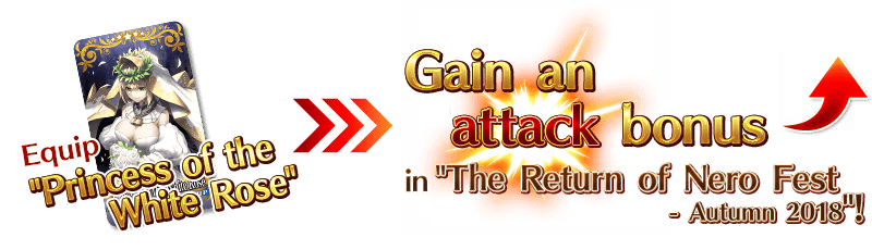 By equipping the Event Limited Craft Essence "Princess of the White Rose," available through Crimson Petal Exchange, you can gain an attack bonus within "The Return of Nero Fest - Autumn 2018" quests.