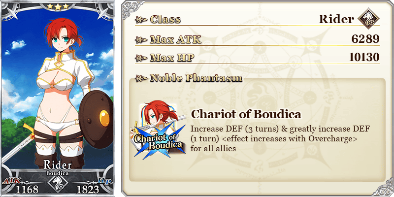 ★★★★★SSR Princess of the White Rose ATK 250 (MAX: 1000) HP 400 (MAX: 1600) Skill Apply Guts (1 time, restore 1 HP) & begin battle with NP Charged at 10% for yourself + Increase ATK by 100% for yourself [Event only]