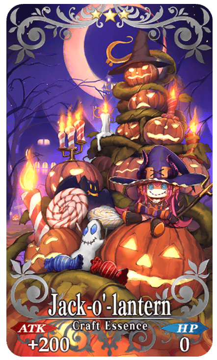 ★★★R Jack-o'-lantern ATK 200 (MAX: 1000) HP 0 Skill Apply Damage Plus 100 for yourself + Increase Sweet Candle drop amount by 1 [Event only]