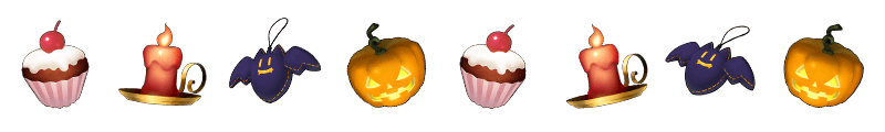 * At the end of the exchange period, Pumpkin Lanterns, Mischievous Bats, Sweet Candles and Petit Cakes will disappear.