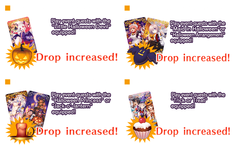 Furthermore, you can increase event item acquisition by equipping the Limited Time Craft Essences "★5 (SSR) Little Halloween Devil," "★4 (SR) Halloween Arrangement," and "★3 (R) Jack-o'-lantern."
