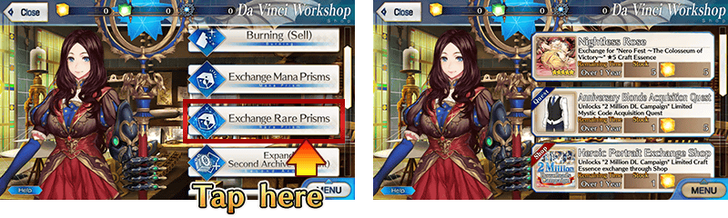 Items exchangeable for Rare Prisms will include event items and Event Limited Craft Essences from past events.