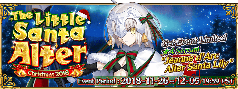 You must have completed "First Singularity: Hundred Years' War of The Evil Dragons, Orleans" to participate in the Limited Time Event "The Little Santa Alter - Christmas 2018".