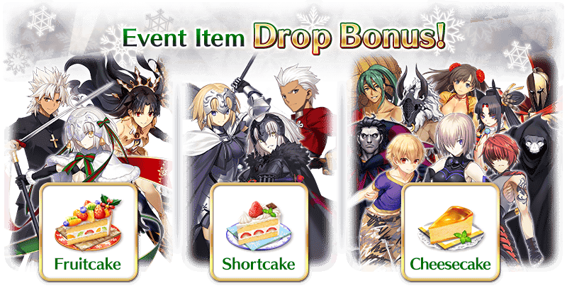 Add certain Servants to your party to increase the number of event items "Fruitcake," "Shortcake," and "Cheesecake" per drop!