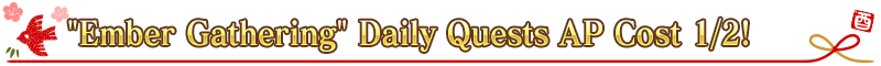 For a limited time, Novice, Intermediate, Advanced, and Expert "Ember Gathering" Quests (available within Chaldea Gate) will have their AP cost halved!