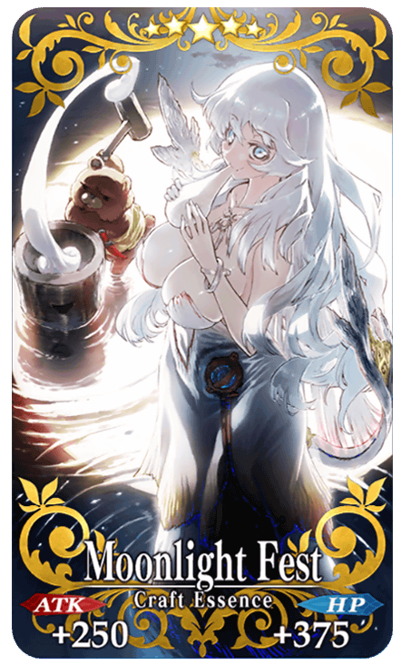 Equip the Craft Essences "Moonlight Fest," "Moon Goddess' Bath," "Moony Jewel," and "Mooncell Automaton" to greatly increase the amount of event items you gather! "Moonlight Fest" will be available through Event Item Exchange, and "Moon Goddess’ Bath" and "Moony Jewel" will be available for a limited time only through the Pickup Summon.