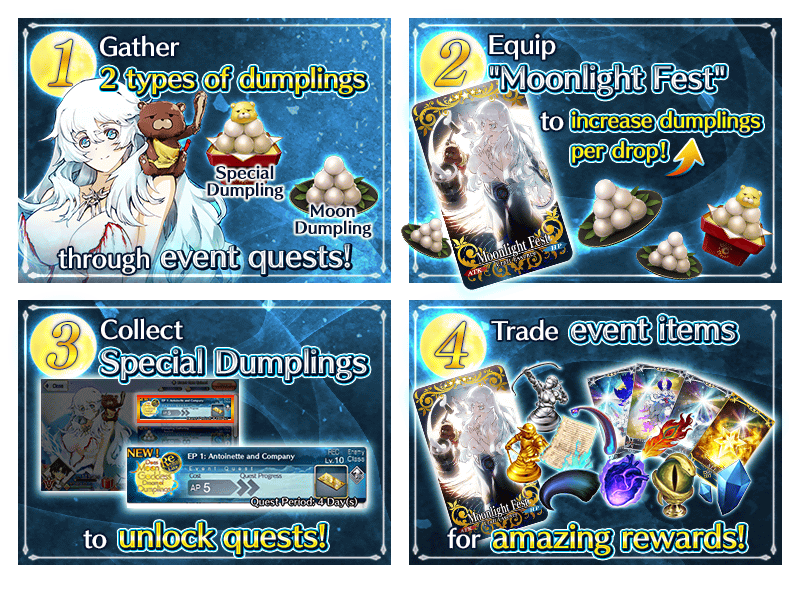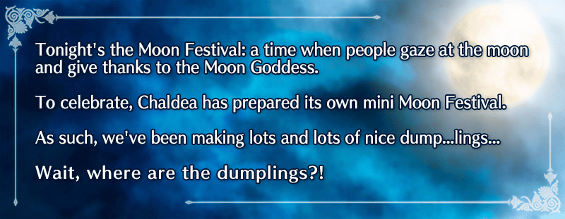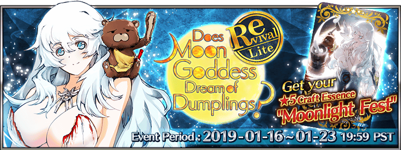 * This event is a Revival: Lite version of the 2017 event "Does Moon Goddess Dream of Dumplings?". Certain elements, such as number of event items necessary for exchange, have been adjusted to create a more enjoyable experience.