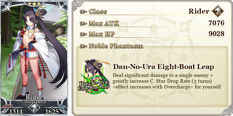 ★★★★★SSR Moonlight Fest ATK 250 (MAX: 1000) HP 375 (MAX: 1500) Skill Increase your Critical Star drop rate and your Critical Strength by 15% + increase amount of Special Dumplings and Moon Dumplings per drop by 3 [Event only] ![]() |