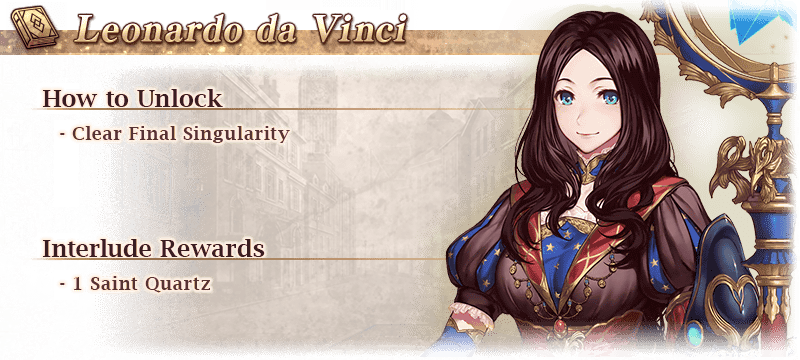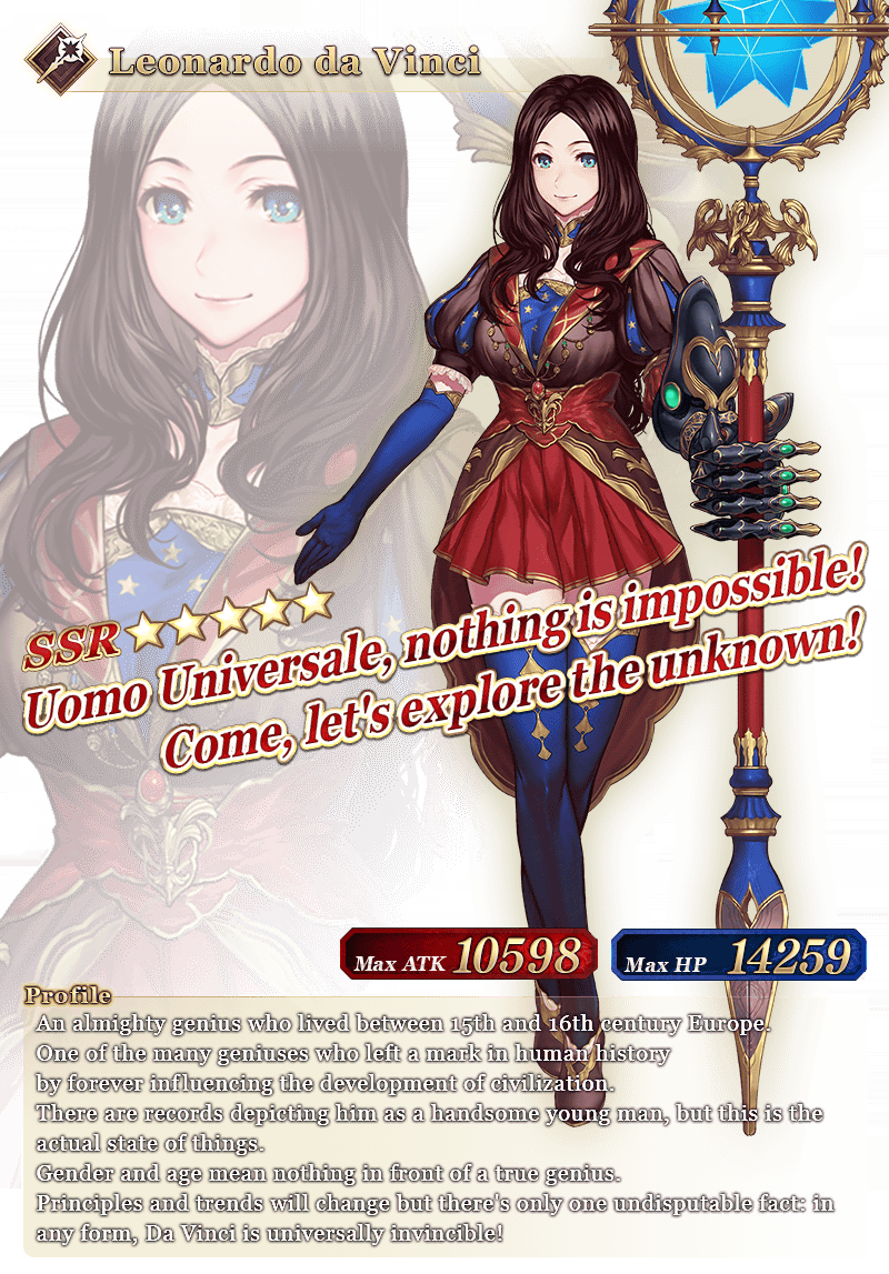 * Leonardo da Vinci will not be added to Story Summon after the Pickup Summon period ends.