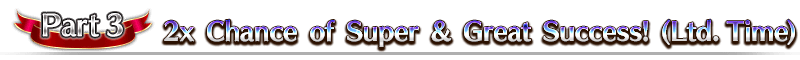 The chance of Super Success (double EXP acquired) and Great Success (triple EXP acquired) when performing Servant and Craft Essence Enhancement will be doubled for a limited time! Don't miss this chance to strengthen your favorite Servants and Craft Essences!