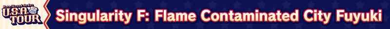 | 2019-02-18 20:00 - 02-19 19:59 PST | Singularity F: Flame Contaminated City Fuyuki | First Singularity: Hundred Years' War of the Evil Dragons Orleans |