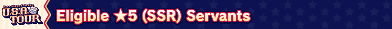 Please tap the "Summon Info" button on the bottom left corner of the "FGO U.S.A. Tour 2019" Kickoff! Singularity Pickup 1 Summon (Daily) and Pickup 2 Summon (Daily) screens for more details.