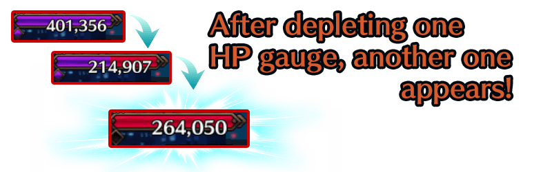* Only one HP gauge can be depleted per turn. Overgauge damage will not be carried over to the next HP gauge.