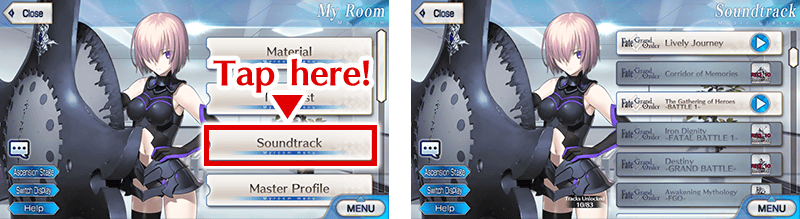 Certain music tracks will also require you to progress to a certain point in the story, have participated in a certain event, or have Summoned certain Servants in order to unlock them.