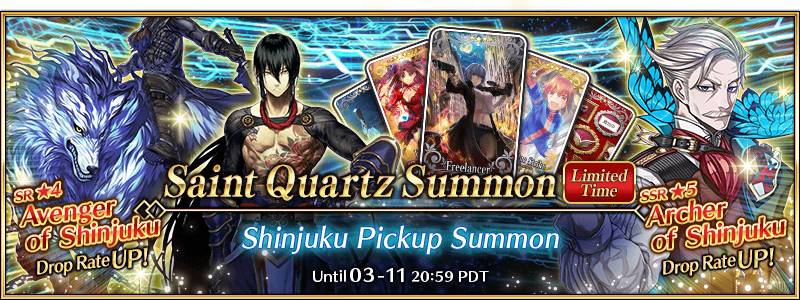 * Assassin of Shinjuku and Avenger of Shinjuku will be added to Story Summon after the Pickup Summon period ends.