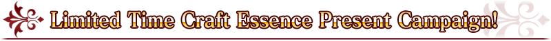 To commemorate CHALDEA BOYS COLLECTION 2019, we're holding a present campaign! Each Master will be able to choose one of the Limited Time Craft Essences! For more information, click here or on the banner above.