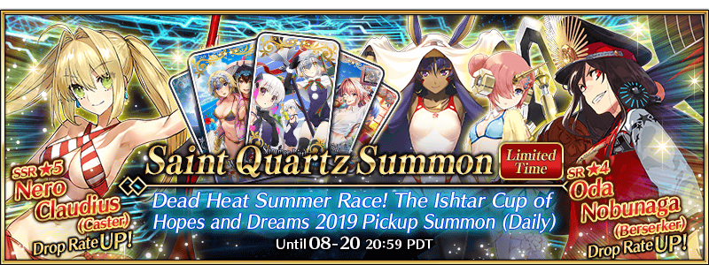 Dead Heat Summer Race! The Ishtar Cup of Hopes and Dreams 2019 Pickup Summon (Daily) Period: