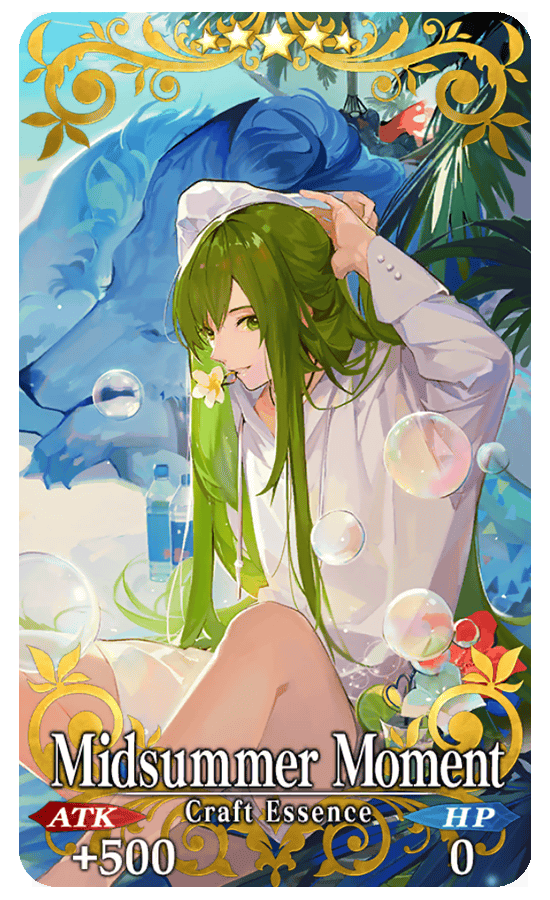 Limited Time Craft Essences "★5 (SSR) Midsummer Moment," "★4 (SR) King, Joker, Jack," and "★3 (R) Chaldea Beach Volleyball" will also be available with an increased drop rate! Equip them to receive an event item drop bonus!