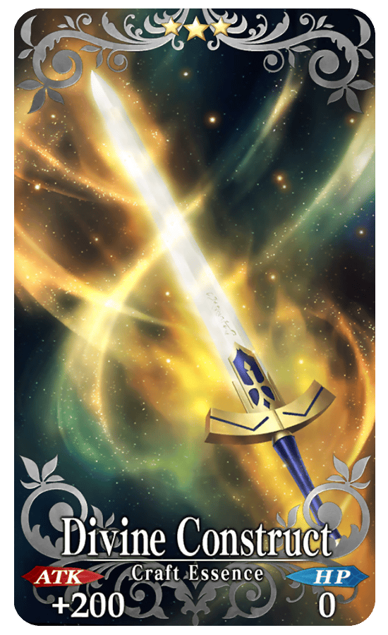 ★★★R Divine Construct ATK 200 (MAX: 1000) HP 0 Skill Increase NP Strength by 15% if equipped by [Saber] class |