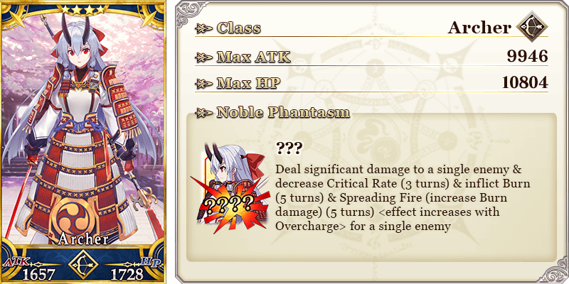 * The name displayed for Servants whose True Names are hidden will change based on story progression. In some cases, the name displayed for their Noble Phantasm will also change.