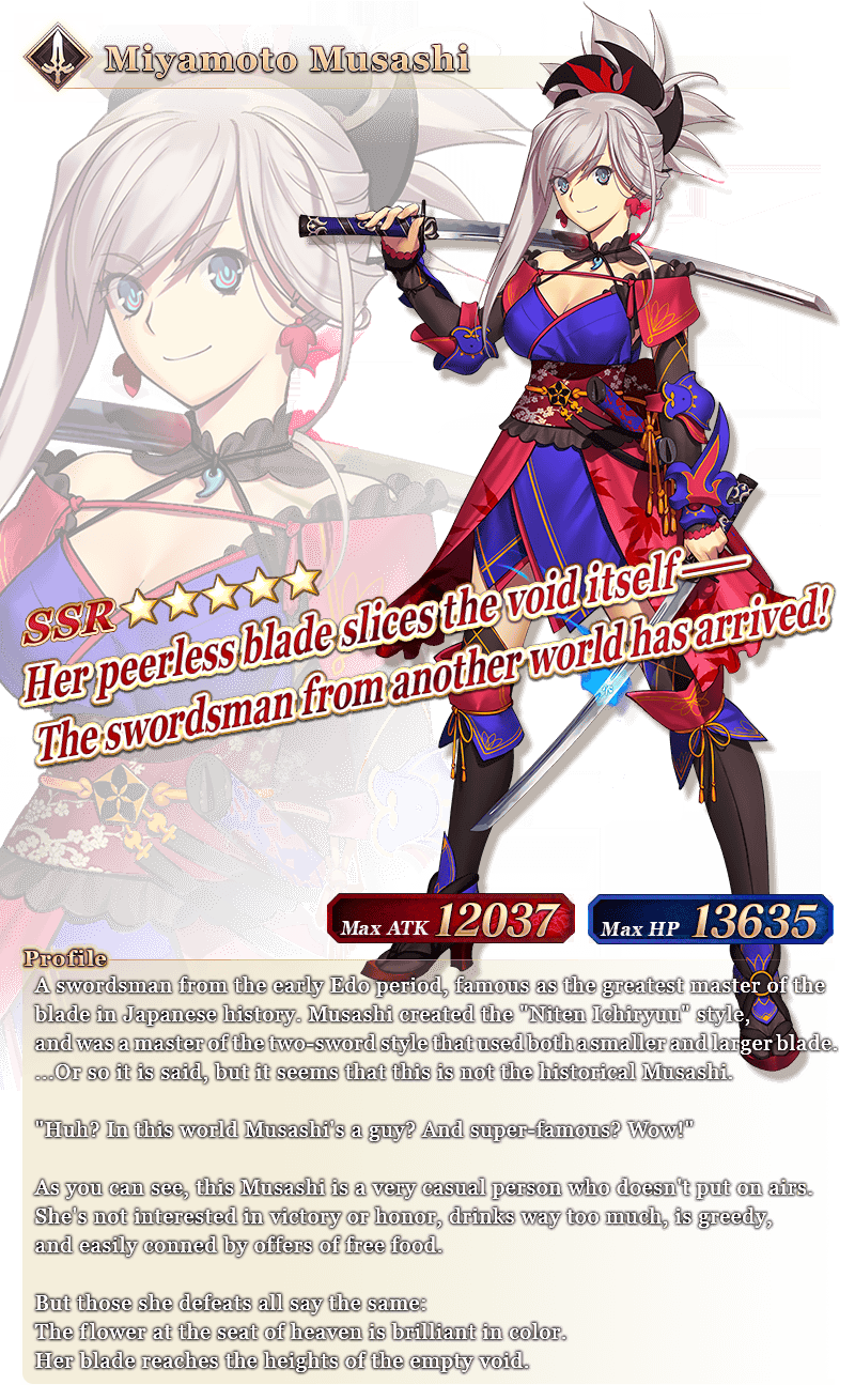* Miyamoto Musashi will not be added to Story Summon after the Pickup Summon period ends.