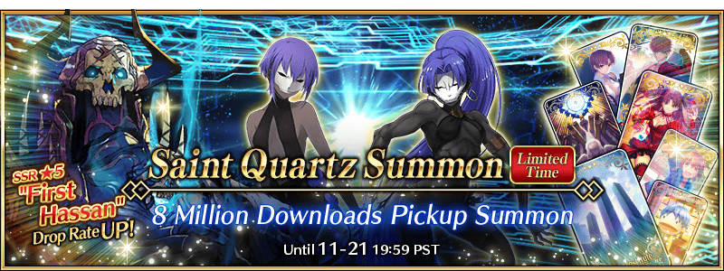 To celebrate eight million downloads of "Fate/Grand Order," "★5 (SSR) 'First Hassan' " will be summonable for a limited time!