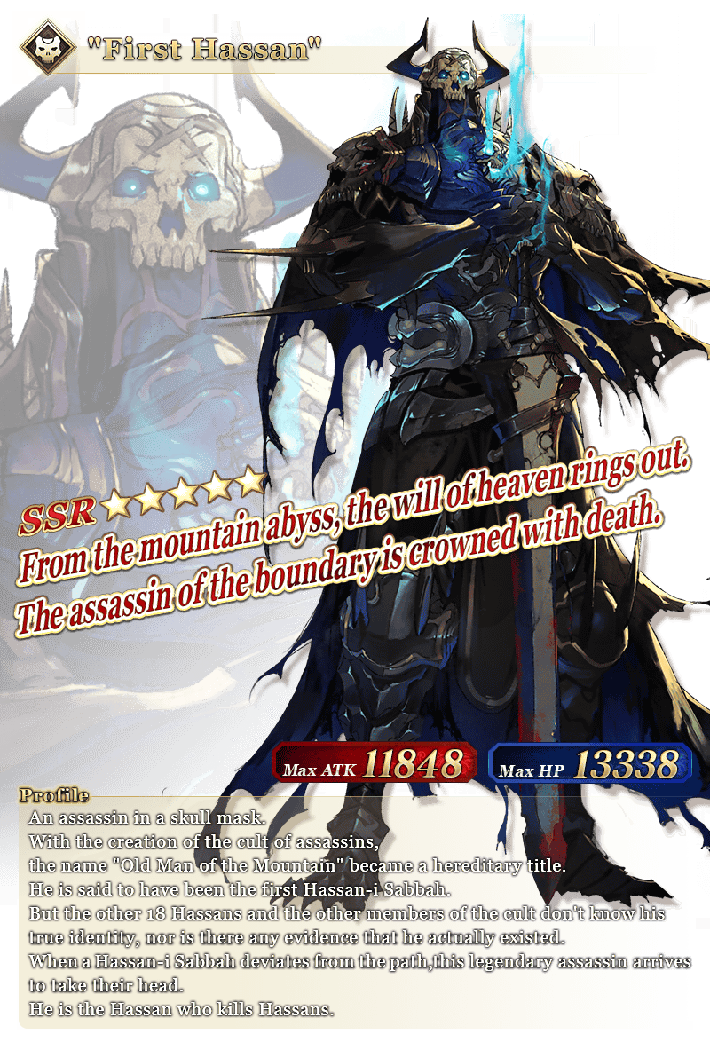 See "★5 (SSR) 'First Hassan' " in action on Youtube, where we're sharing an exclusive video of his Noble Phantasm!