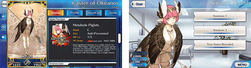Dialogue when Summoned and certain voiced lines will differ depending on whether or not their True Name has been revealed.
