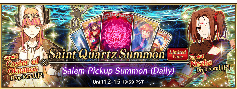 * As the lineup for the Salem Pickup Summon (Daily) will change daily, Nezha and Caster of Okeanos will not be summonable on certain days. Please be sure to confirm the lineup before summoning.